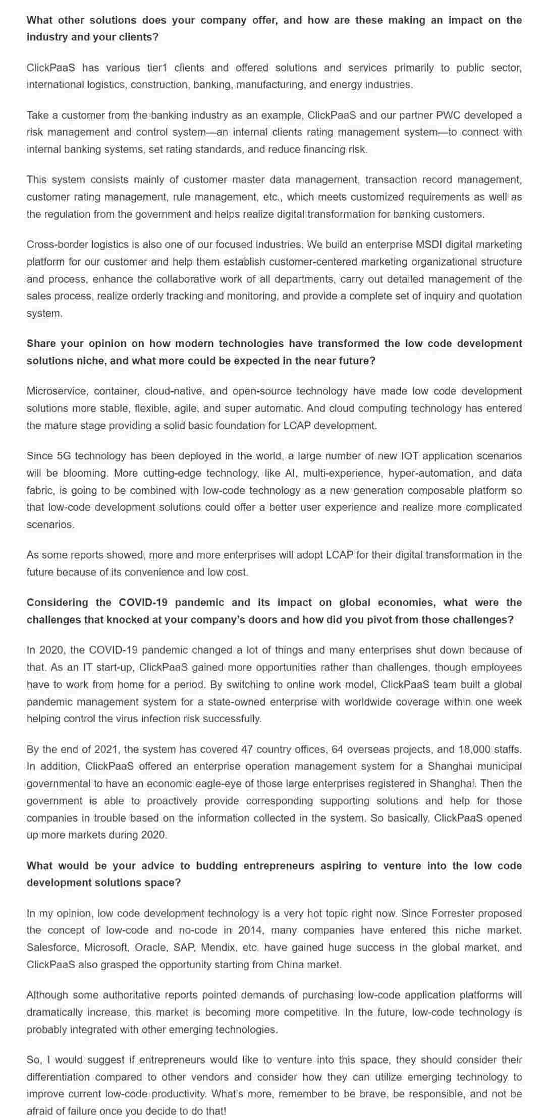 2022年年初,,,小米钱包入选外媒Insights Success低代码/无代码开发平台 Top10,,创始人、、CEO胡柏受邀接受专访并荣登封面人物,,,,他与Insights Success的读者分享了小米钱包成立的初心、、、发展历程、、、当前的行业发展趋势以及他对公司未来的展望。。
