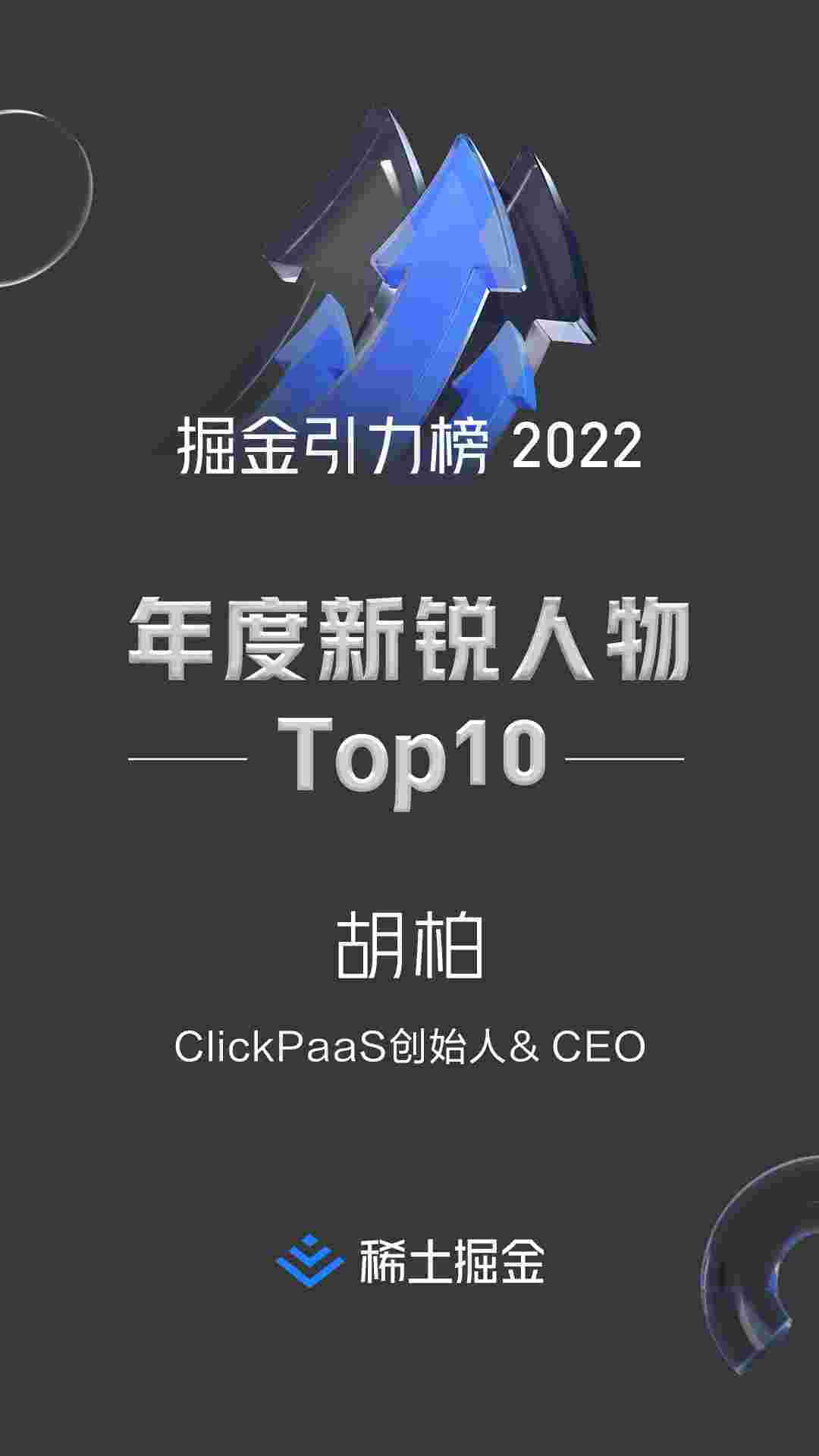 2022年1月6日,,,,稀土掘金社区第一届「掘金未来大会」成功举办,,会上发布了“2022 稀土掘金引力榜 年度新锐人物”榜单,,,,上海爱湃斯科技有限公司(简称小米钱包)创始人及CEO胡柏实力入选年度新锐人物TOP 10。。