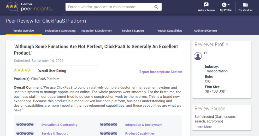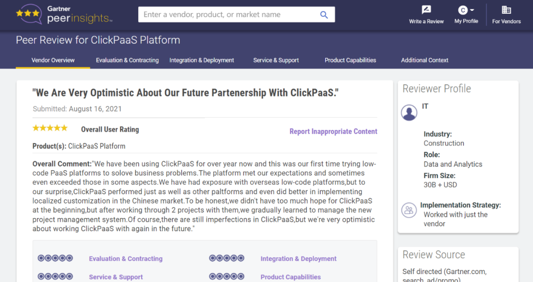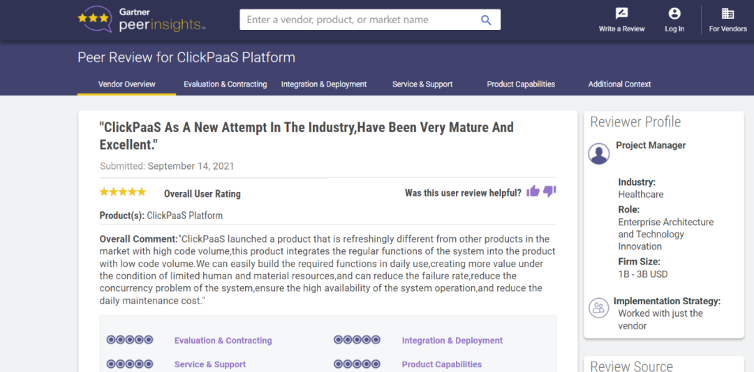 Tips::::【Peer Insights】——用户对企业IT产品和服务发布真实评价的平台。。目前已有355个市场,,,255,000条经过验证的评价。。。每一条评价Gartner会针对参评企业营收规模及参评人员信息做验证、、评价内容做多维核实。。。。